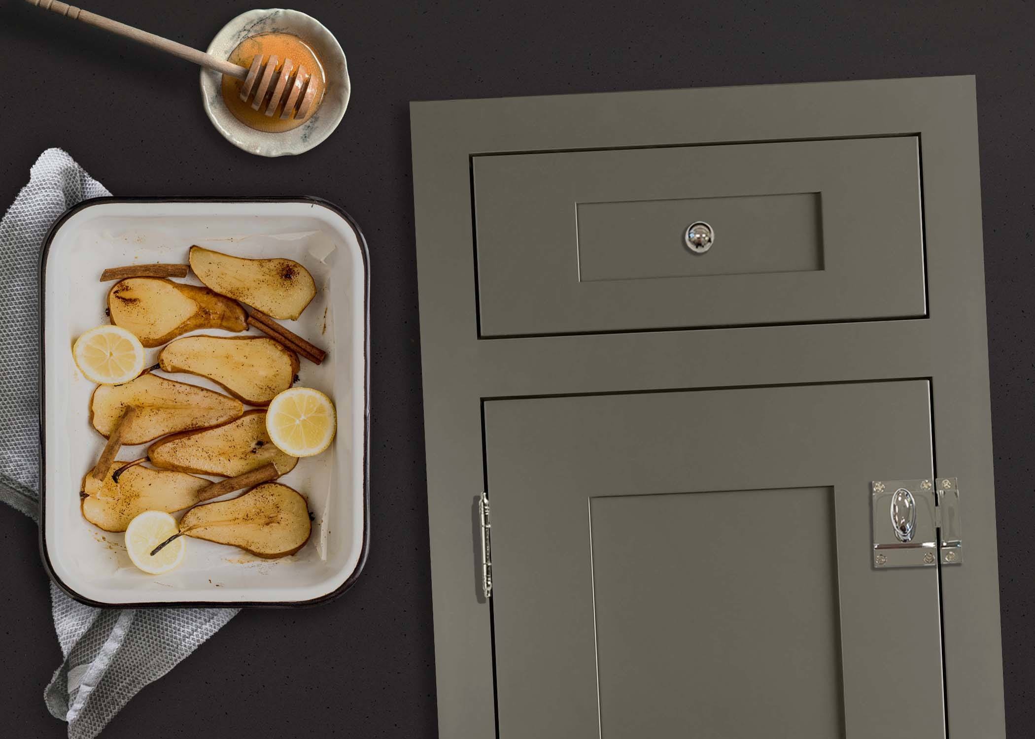 Slab cabinet doors are not just for sleek, contemporary designs. In whimsical colors and with fun, retro hardware they become quaint and nostalgic – especially in a smaller space like kitchenettes.