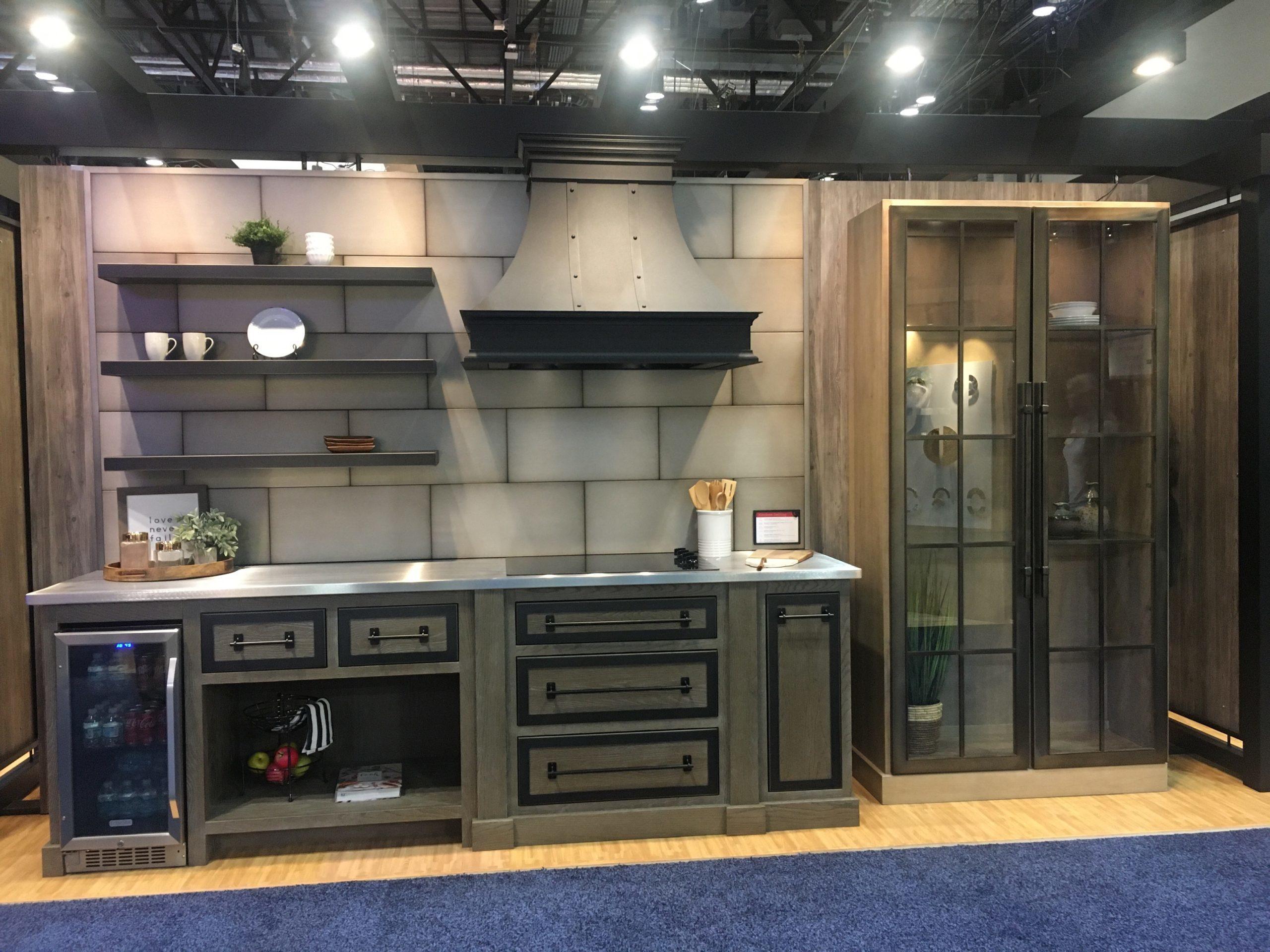 We saw metal design elements used in many displays at the KBIS show. The most notable features were metal open shelves, hardware, door fronts, and even metal on hoods!